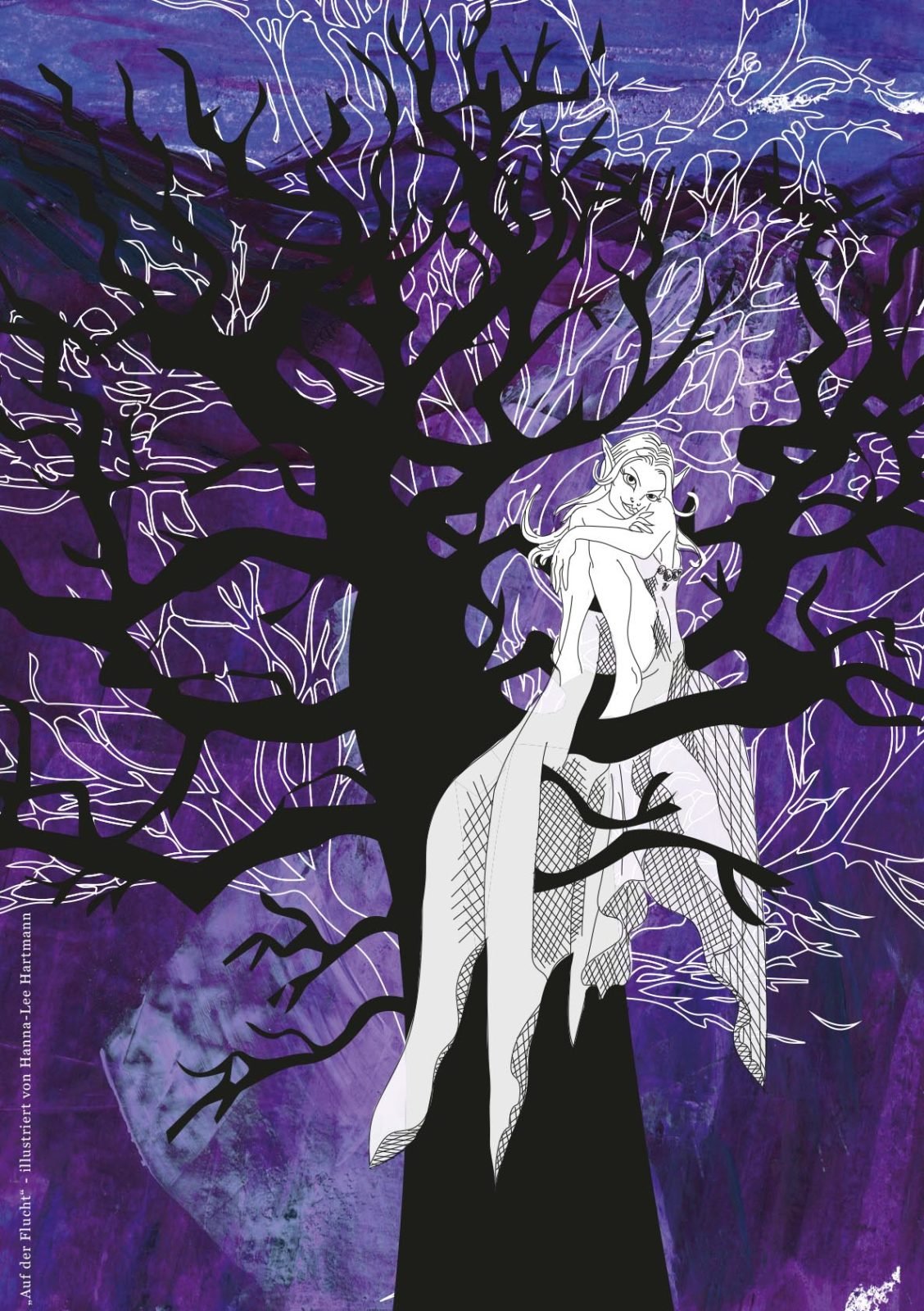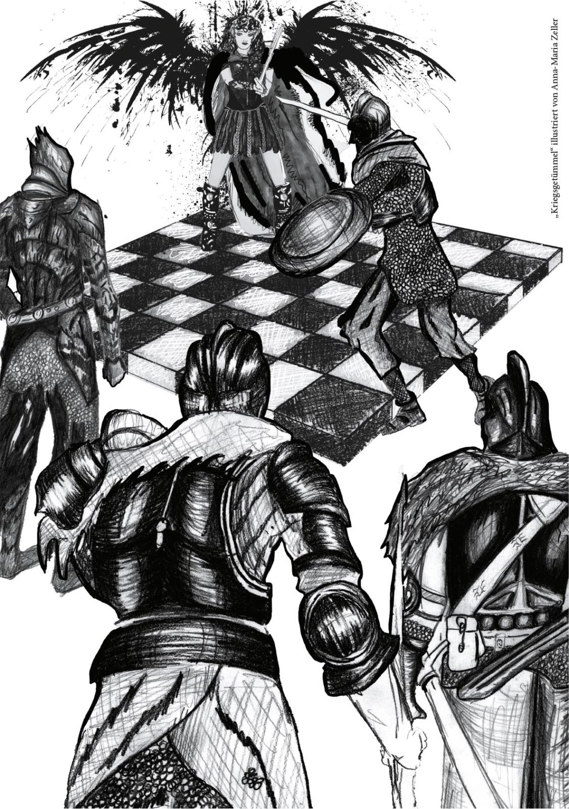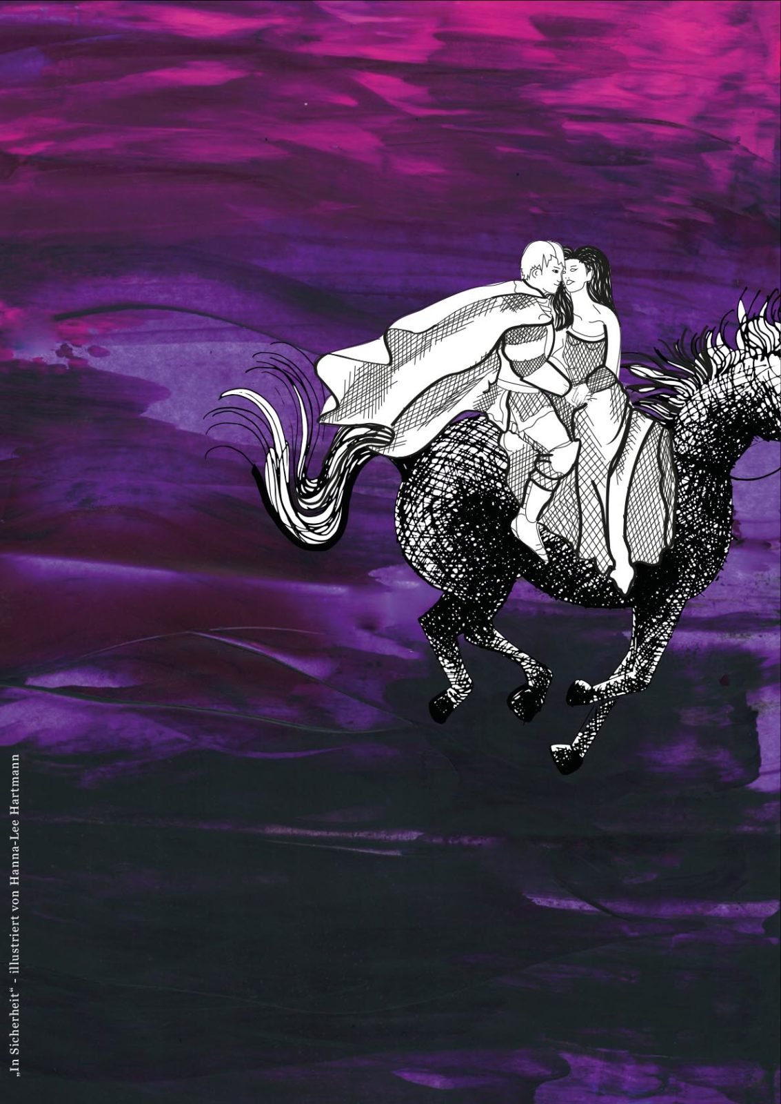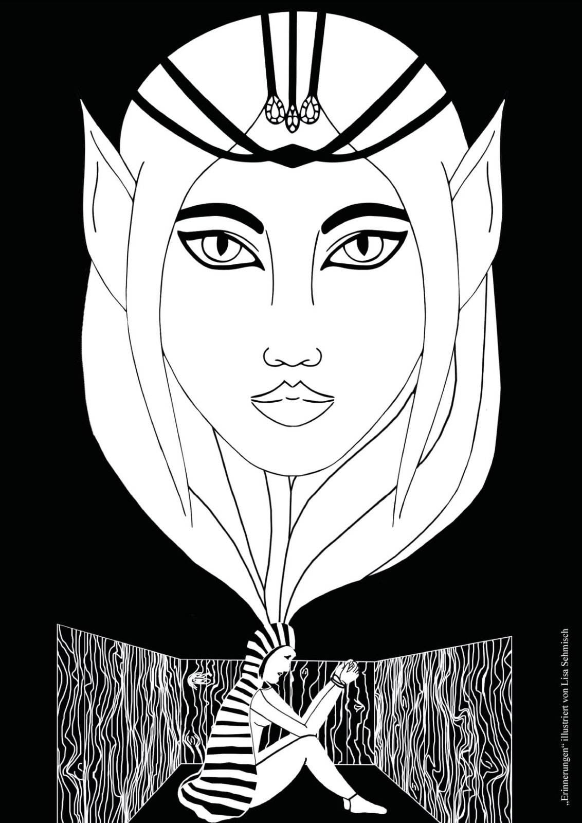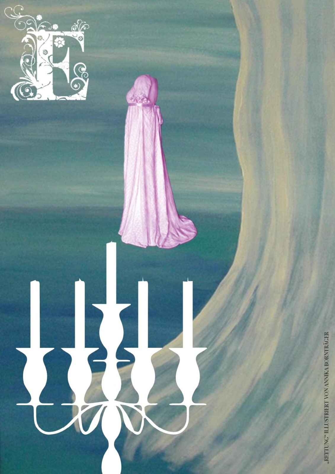 Danach ging’s zwei Stockwerke höher zur Design-Klasse. Diese Klasse befindet sich gerade kurz vor ihrem Abschluss (Ich drück euch allen gaaanz fest die Daumen für die Prüfungen!!!) und hat sich als Abschlussarbeit mein Buch ausgesucht, um es zu illustrieren. 43 (!) Bilder sind dabei entstanden in den unterschiedlichsten Techniken und Verfahrensweisen. Hammergeniale Bilder sind dadurch entstanden, eines schöner als das andere. Gegliedert wurde es kapitelweise, sodass ich gleich erkennen konnte, zu welcher Stelle im Buch das jeweilige Bild gehört.