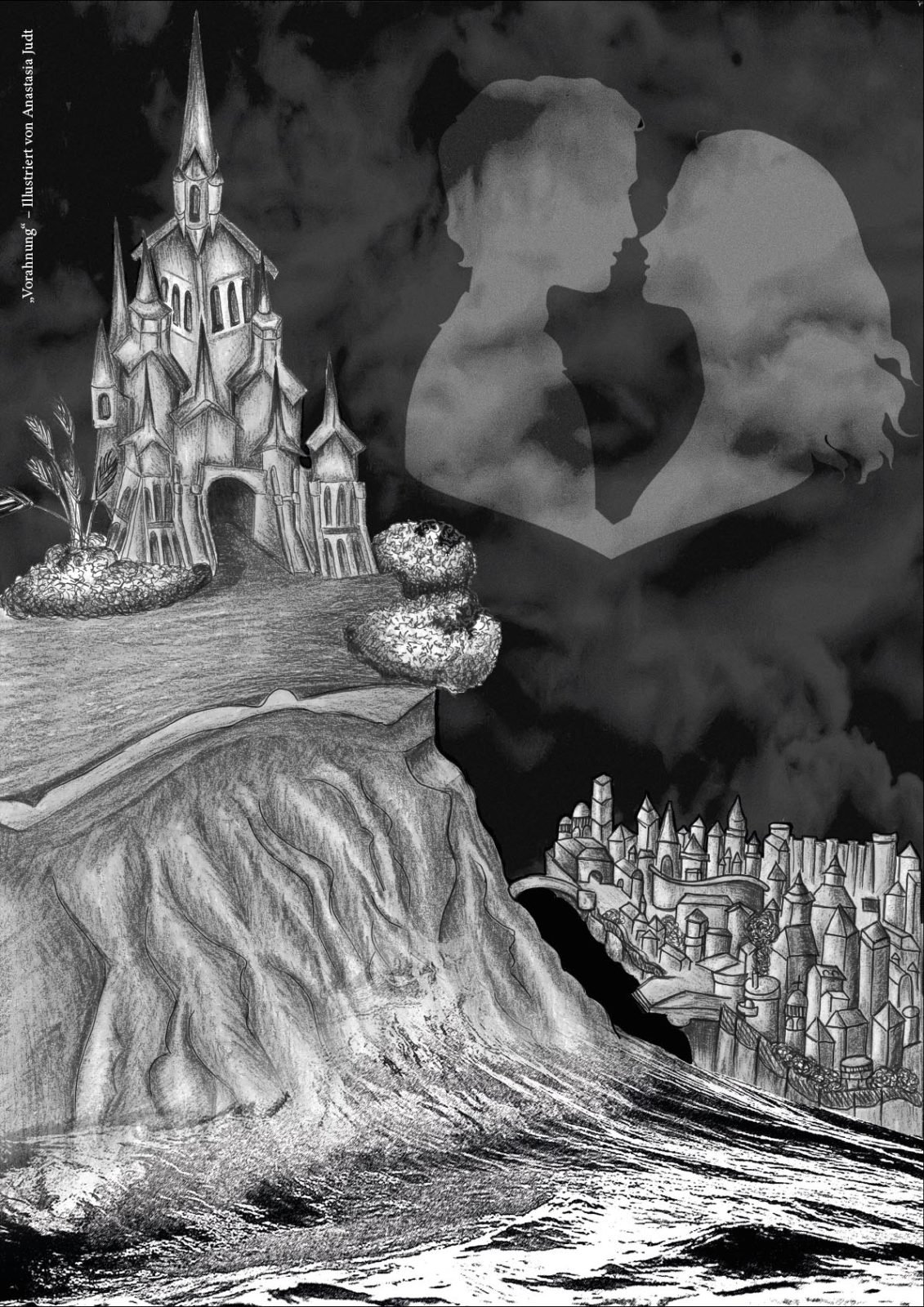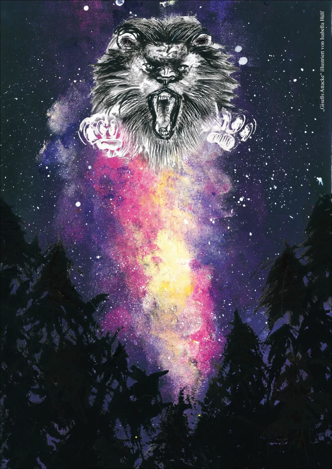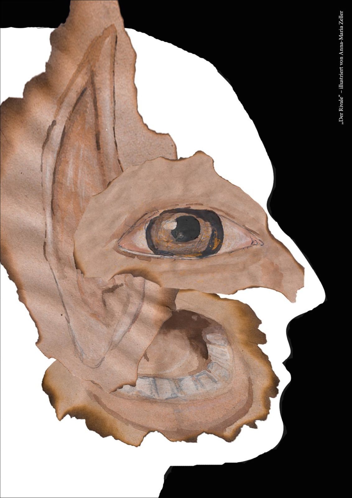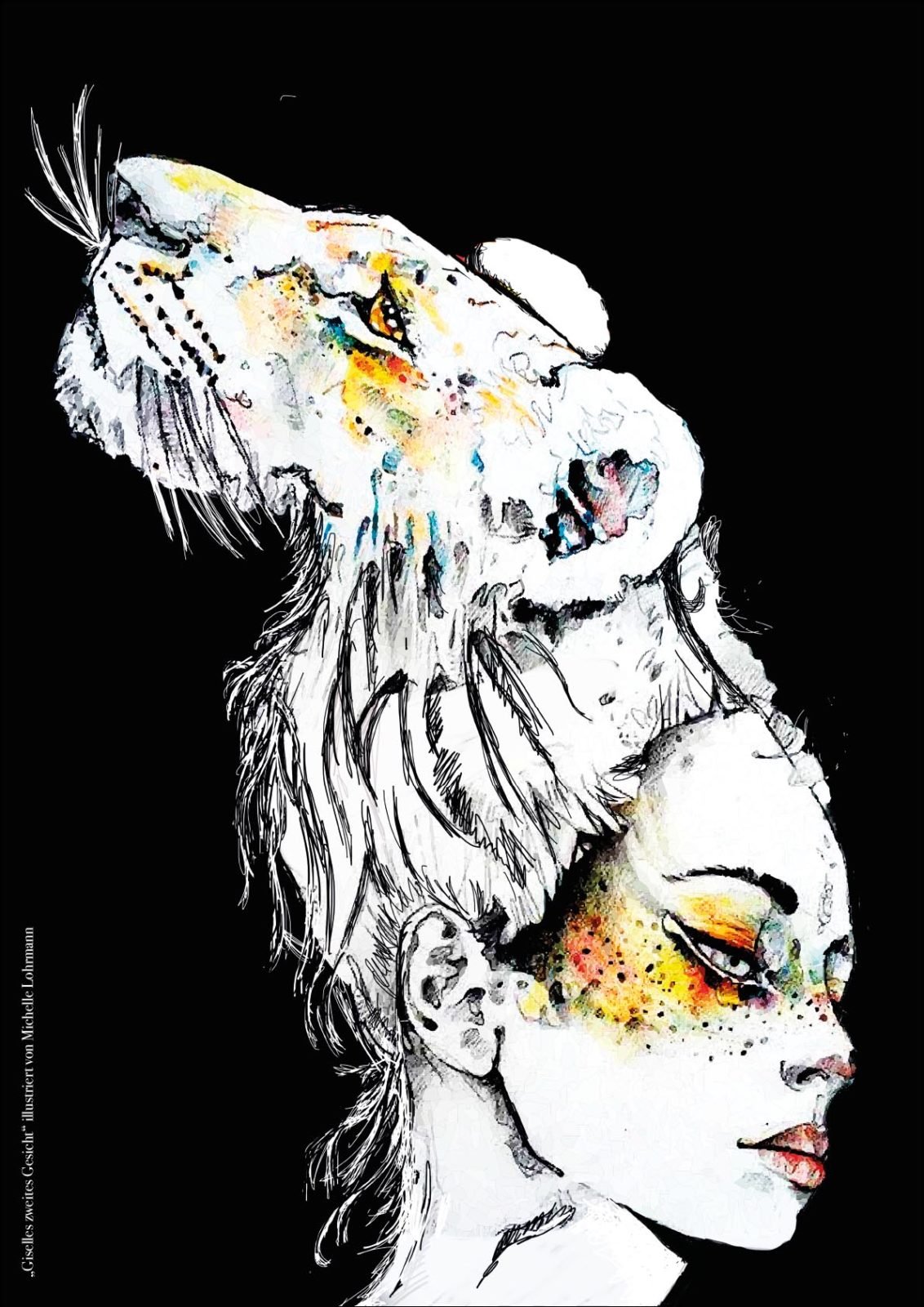Danach ging’s zwei Stockwerke höher zur Design-Klasse. Diese Klasse befindet sich gerade kurz vor ihrem Abschluss (Ich drück euch allen gaaanz fest die Daumen für die Prüfungen!!!) und hat sich als Abschlussarbeit mein Buch ausgesucht, um es zu illustrieren. 43 (!) Bilder sind dabei entstanden in den unterschiedlichsten Techniken und Verfahrensweisen. Hammergeniale Bilder sind dadurch entstanden, eines schöner als das andere. Gegliedert wurde es kapitelweise, sodass ich gleich erkennen konnte, zu welcher Stelle im Buch das jeweilige Bild gehört.