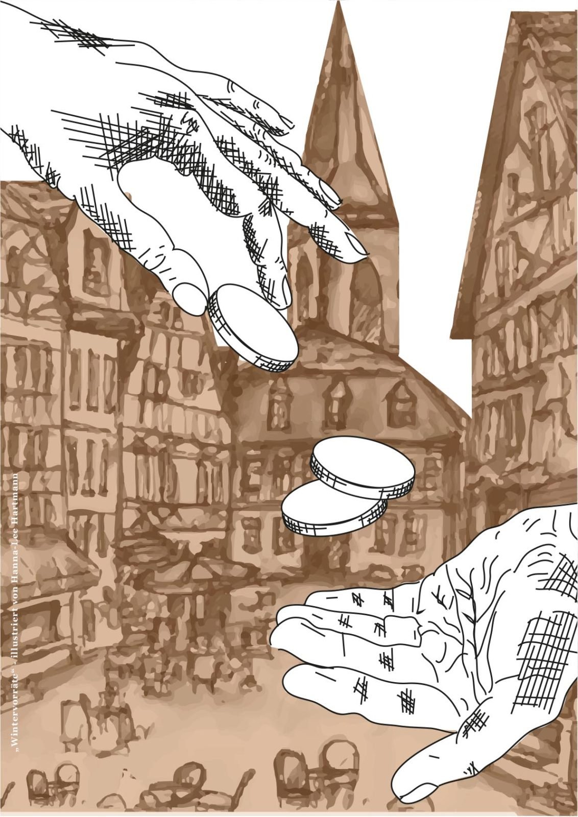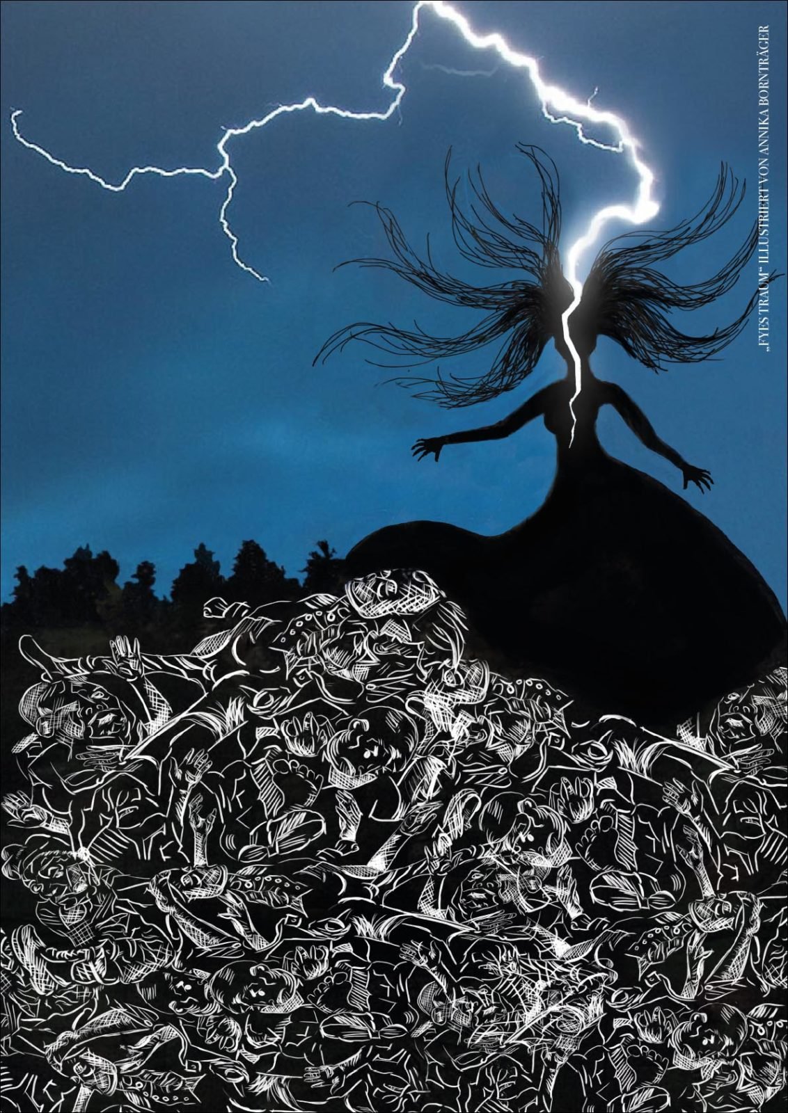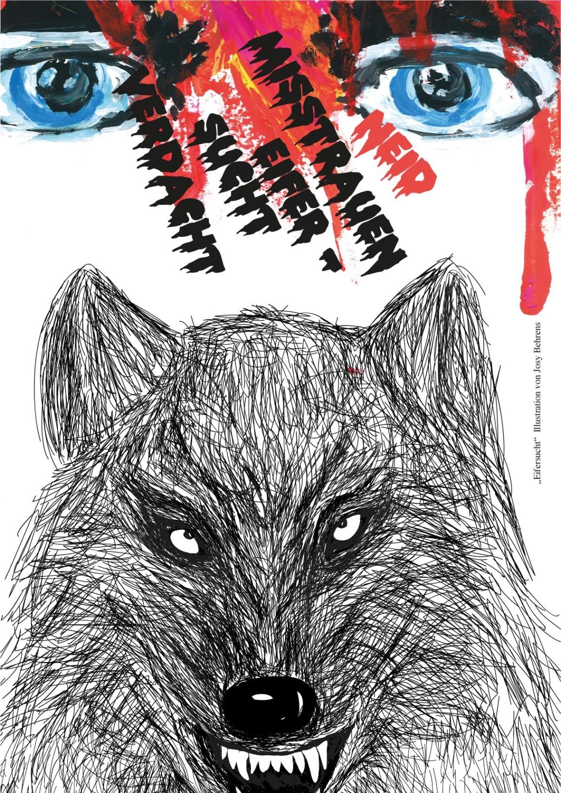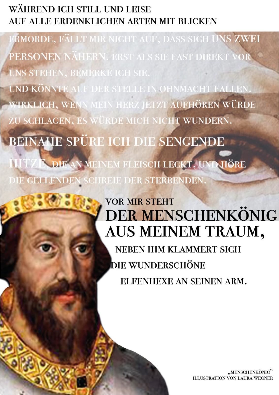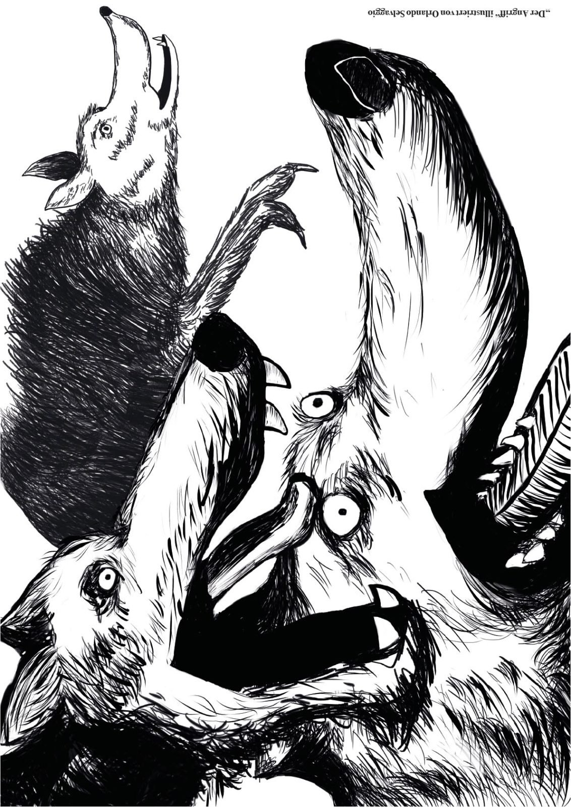 Danach ging’s zwei Stockwerke höher zur Design-Klasse. Diese Klasse befindet sich gerade kurz vor ihrem Abschluss (Ich drück euch allen gaaanz fest die Daumen für die Prüfungen!!!) und hat sich als Abschlussarbeit mein Buch ausgesucht, um es zu illustrieren. 43 (!) Bilder sind dabei entstanden in den unterschiedlichsten Techniken und Verfahrensweisen. Hammergeniale Bilder sind dadurch entstanden, eines schöner als das andere. Gegliedert wurde es kapitelweise, sodass ich gleich erkennen konnte, zu welcher Stelle im Buch das jeweilige Bild gehört.