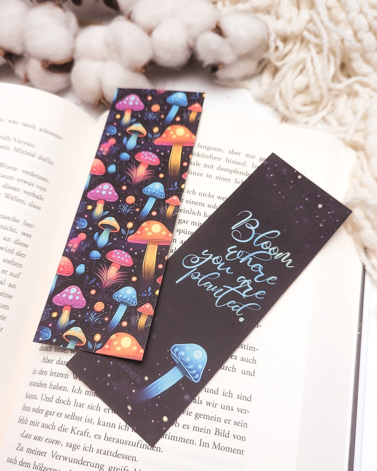 Suchst du nach einem einzigartigen Lesezeichen, das deine Lesestunden mit einem Hauch von Magie und Hexenflair erhellt? Dann haben wir genau das Richtige für dich: Unser leuchtendes Pilz-Lesezeichen mit Witch Vibes!