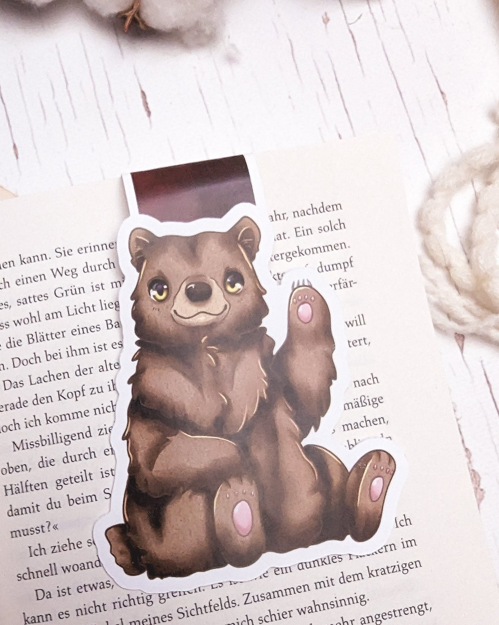 Bist du auch bereit, dich dem Wettkampf der Clans zu stellen? Mit diesem Magnetlesezeichen holst du dir Bran, den treuen Bären und Begleiter der Clanführerin Yrsa, direkt in dein aktuelles Buch. Egal, ob du gerade mitten im eisigen Norden mit Yrsa und Kier mitfieberst oder in einer ganz anderen Geschichte versinkst – Bran sorgt dafür, dass du nie den Anschluss verlierst. Dieses Romantasy-Goodie fängt den magischen Vibe der Wikinger-Welt perfekt ein und macht deine Lesestunden zu einem echten visuellen Fest.