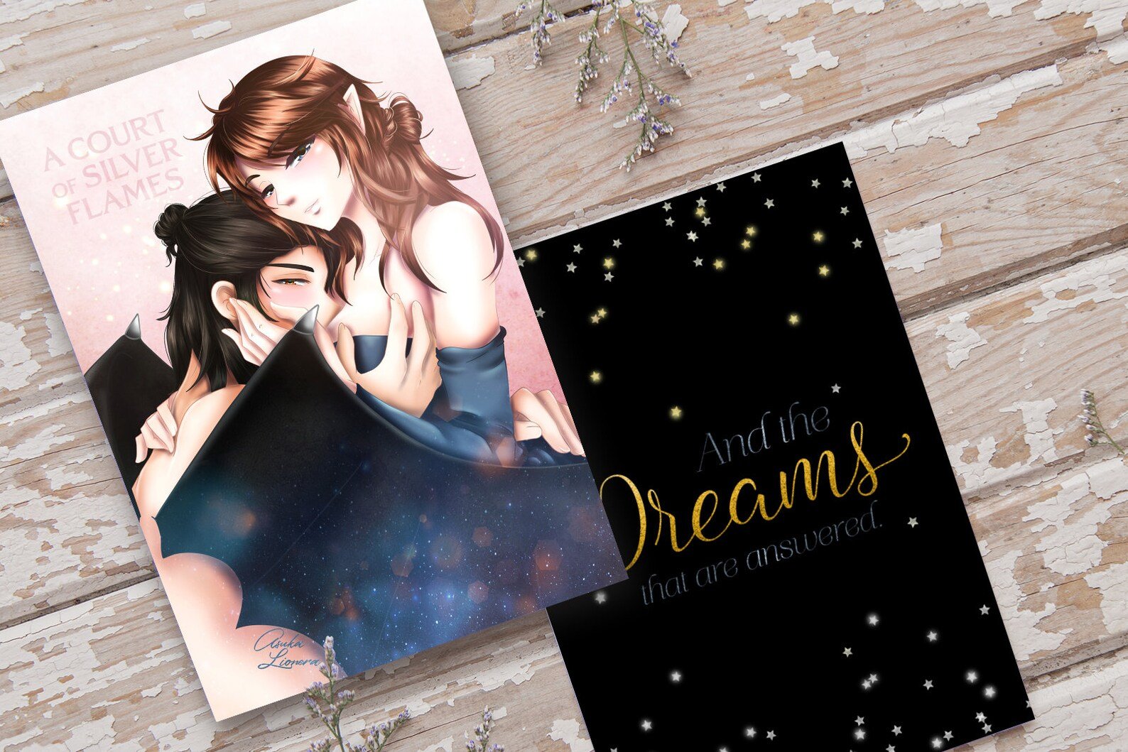 Die Illustration ist beidseitig auf ca. 300g mattes Papier bedruckt und zeigt vorn das von ACoSF inspirierte Motiv und auf der Rückseite einen beliebten Spruch aus der Buchreihe.